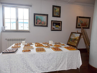 A pintora, Graciana Cruz, lançou depois o desafio de cada elemento dar uma pincelada, numa tela em branco. Desafio que foi aceite pelo nosso anfitrião, pelo Sr. Vice Presidente e outros talentosos pintores... de todas as idades.